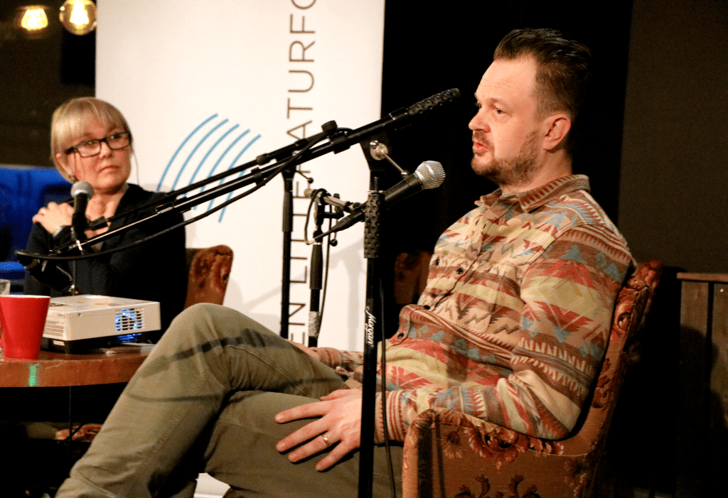 Mens snøen lavet ned satt vi varmt og koselig inn på Bryggerhuset og lot oss fengsle av poeten Gunnar Wærness.