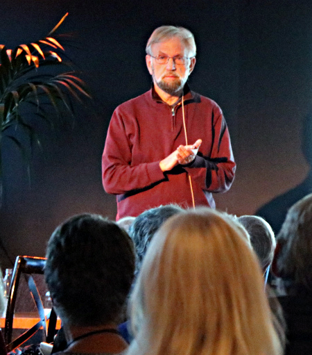 Færøvik holdt et levende foredrag, ispedd bilder og anekdoter hvor før og nå opptrer i en god blanding av selvopplevde opplevelser og historiske godbiter.
